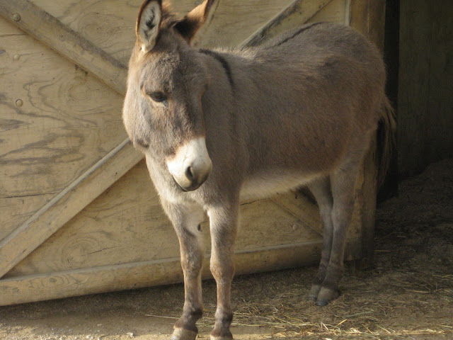 Last but never least is Willow. Donkeys are different physically. When they run, because of where the head connects to the neck and the neck to the body, they run with their head up and, in Willow's case, her head just a bit to the side. She did a buck and fart too. She never jumps up without coming down with a "TOOT!" It's so undignified...and so Willow. She always makes me laugh. She slows herself down by running in a circle, bucking and farting. I totally love having her! She is so much fun. And she's even funnier when she does her buck and fart circle because she's having a temper tantrum! Wish all tantrums were that easy to handle.
